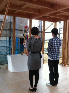 お昼頃無事棟が上がり、Y家族みんなで上棟式。