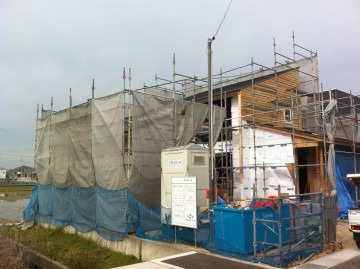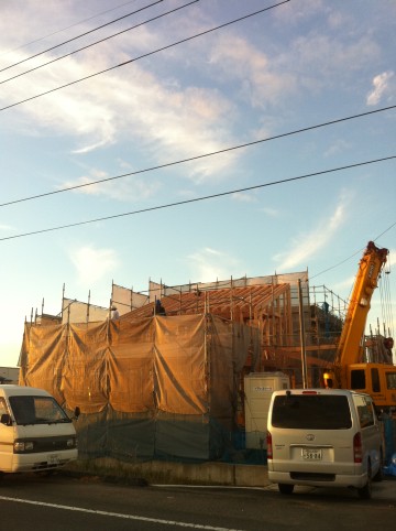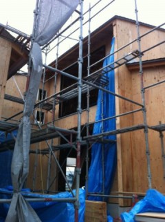 「木漏れ日のコートハウス」の上棟日。