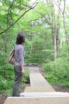 美しい新緑、建物よりも背の高い唐松林がもたらす木陰、心地よい風。